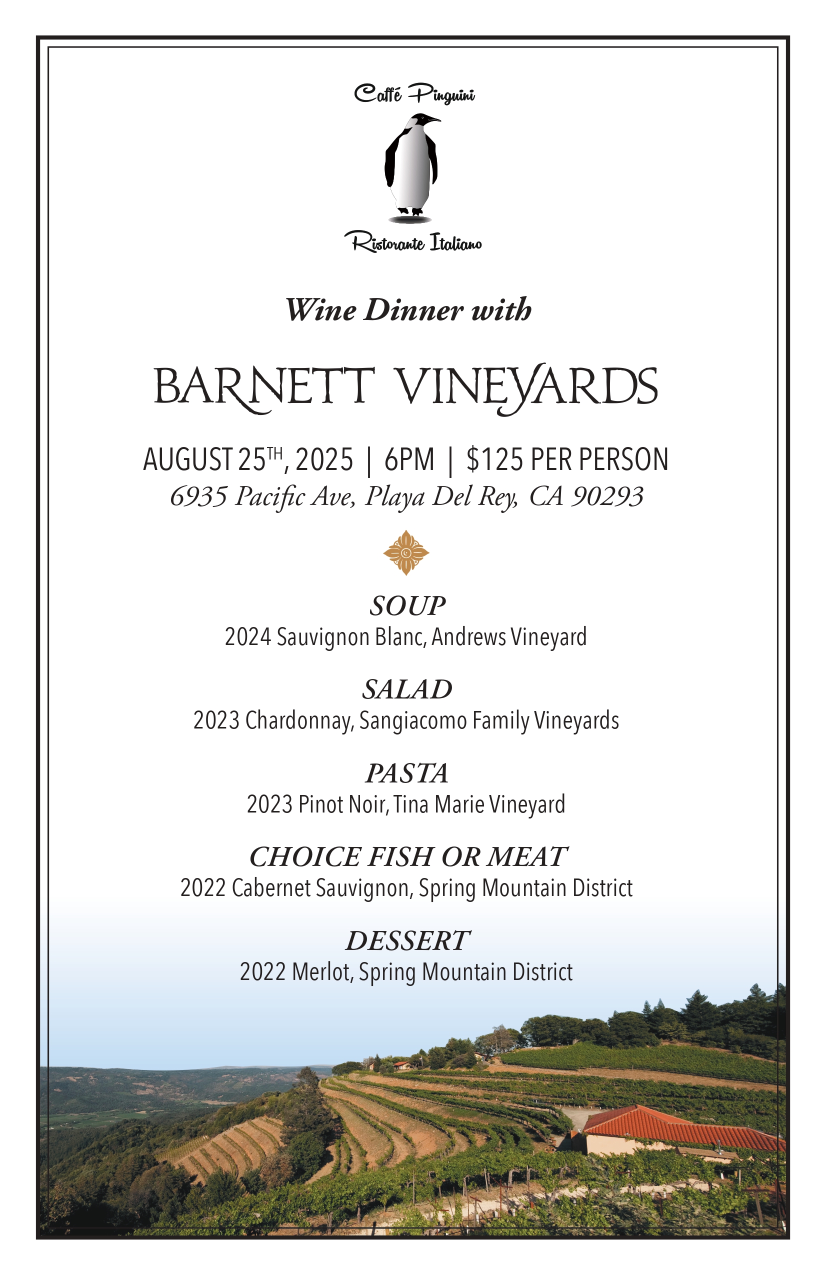 When you walk into Caffé Pinguini you can be assured of a warm Italian greeting from the owner, Tony and his family. He hails from Rome, and has been running this quaint Italian restaurant with Enrico Fiorentini, who in the meantime decided to retire to enjoy his life, located in the sleepy beach town of Playa del Rey, CA, since 1997. Tony has been making locals and beyond, happy with daily specials, hand-tossed pizzas, homemade bread, delicious pastas and a number of simply prepared chicken, fish and veal dishes.